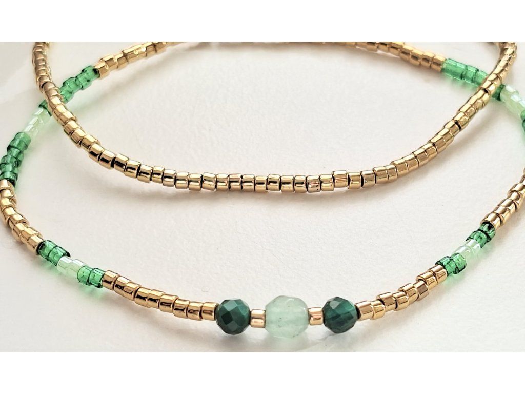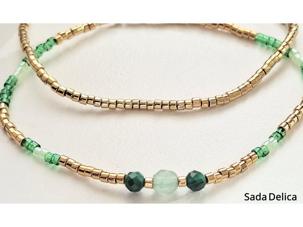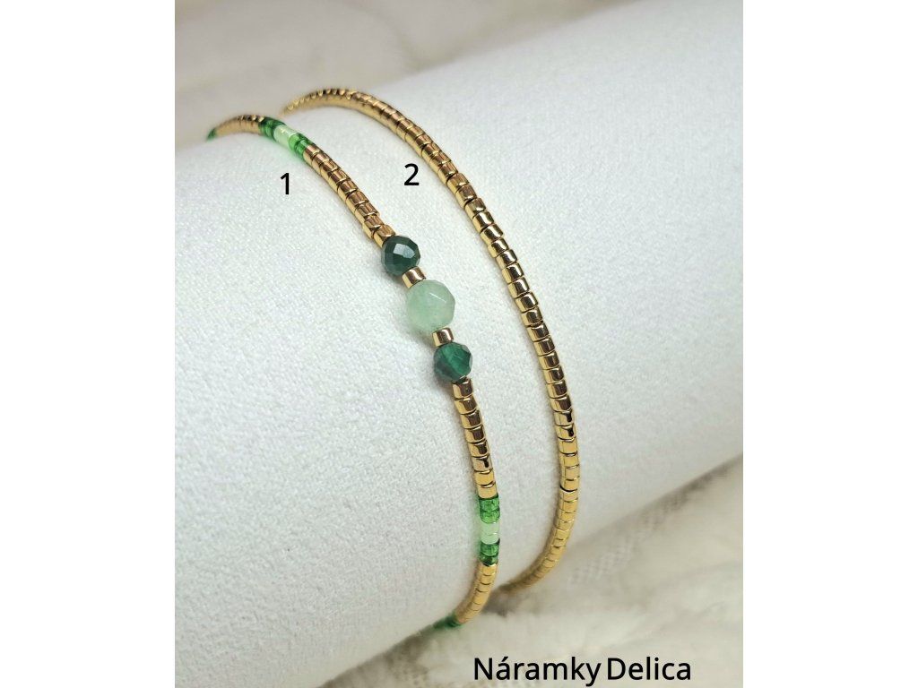 Objavte krásu jemnej elegancie s našou sadou náramkov z  Miyuki Delica korálkov v jemnej elegantnej kombinácií zelenej so zlatým akcentom .