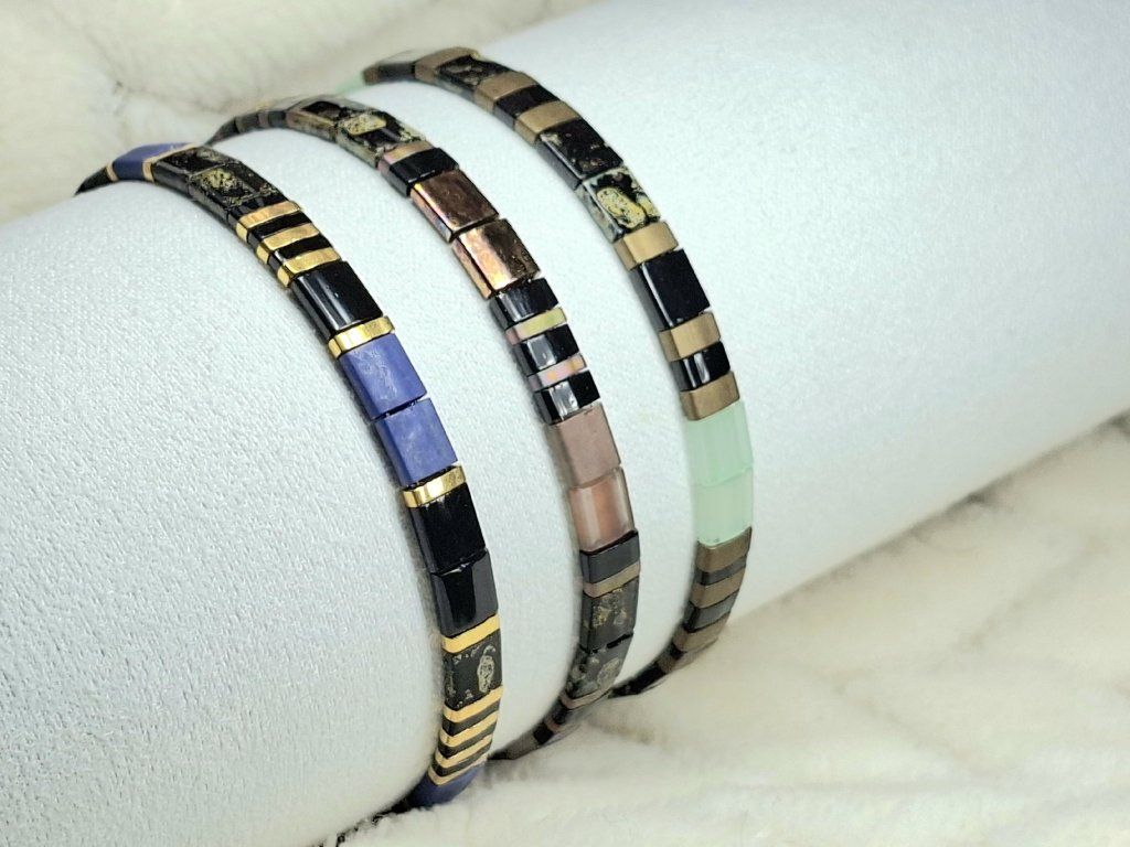 Objavte krásu jemnej elegancie s našou sadou náramkov z  Miyuki Tila korálkov v nadčasových kombináciach. Každý náramok je ručne navlečený s láskou na pružnom gumenom silóne, ktorý zaručuje pohodlné nosenie a dokonalé prispôsobenie sa zápästiu.