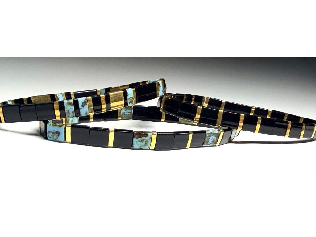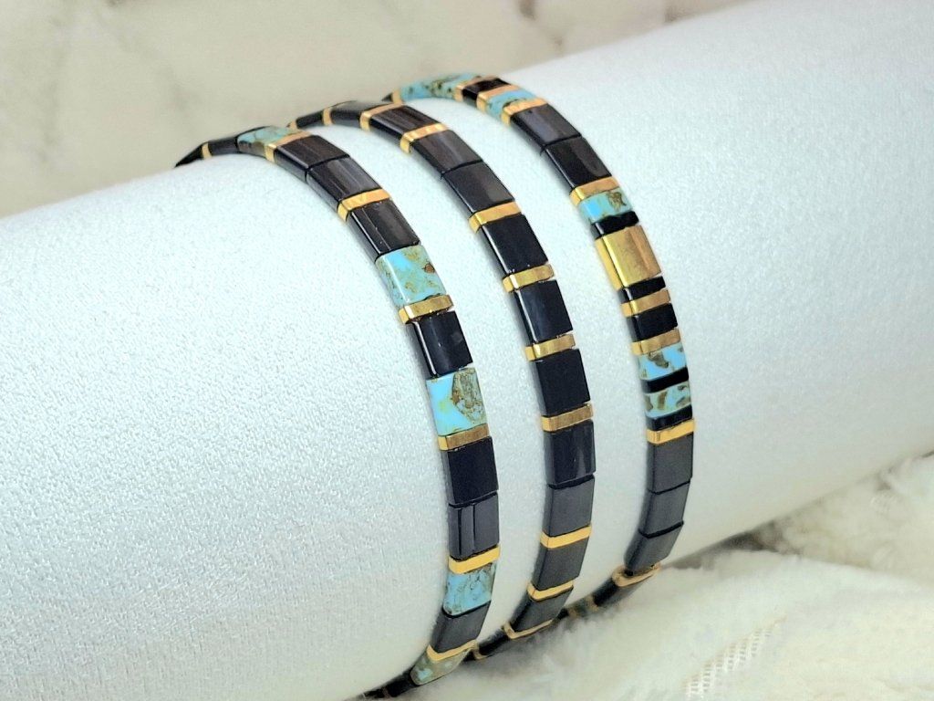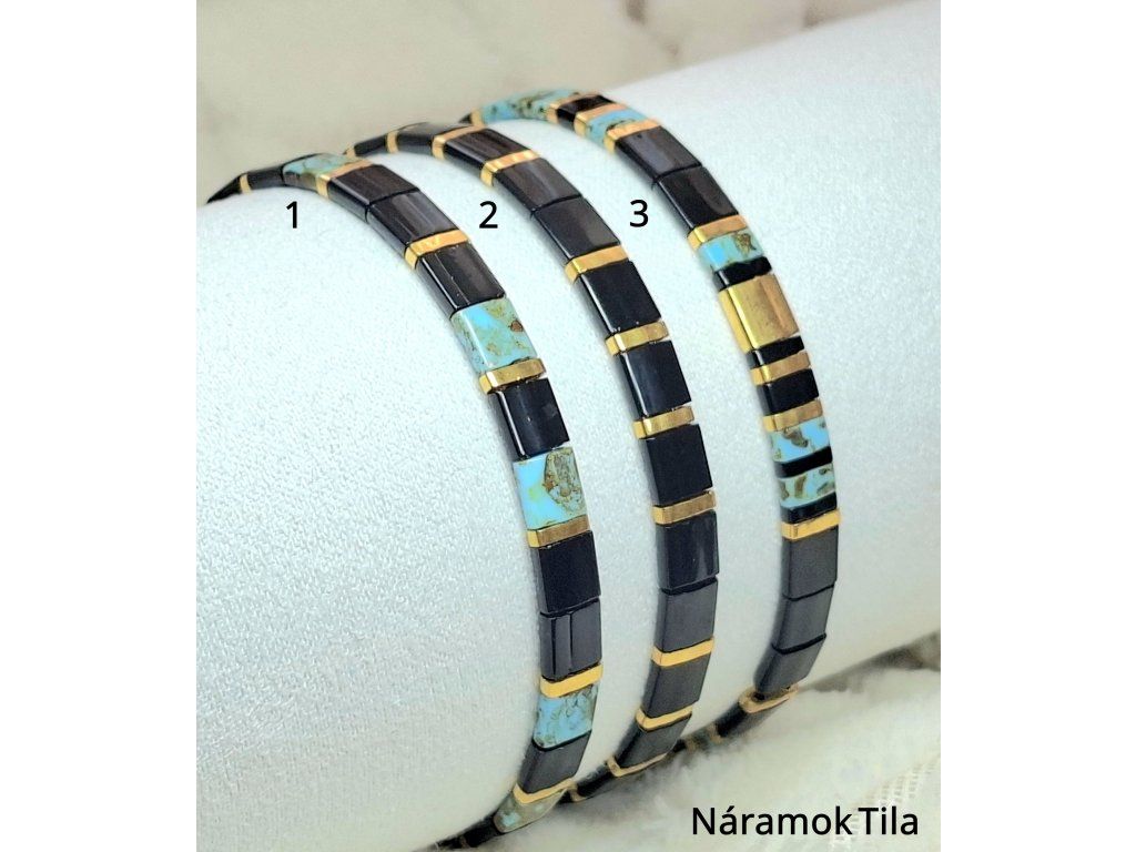 Objavte krásu jemnej elegancie s našou sadou náramkov z Miyuki Tila korálkov v nadčasovej kombinácií čiernej s tyrkysom. Každý náramok je ručne navlečený s láskou na pružnom gumenom silóne, ktorý zaručuje pohodlné nosenie a dokonalé prispôsobenie sa zápästiu.